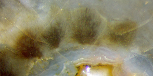 on the surface of bluish silica gel around Aglaophyton.