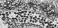 clusters of a few cells, filled with fungus matter. Image width 5mm.