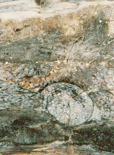 Fig.3 (right): Section of nematophyte, probably Nematophyton taiti,